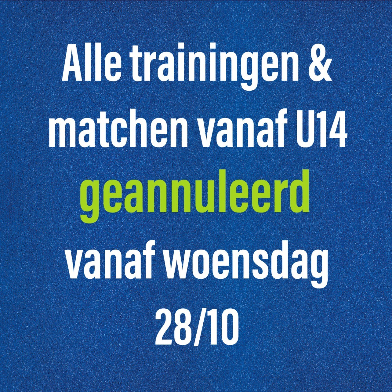 Annulatie van trainingen vanaf 19u30 omwille van vries.