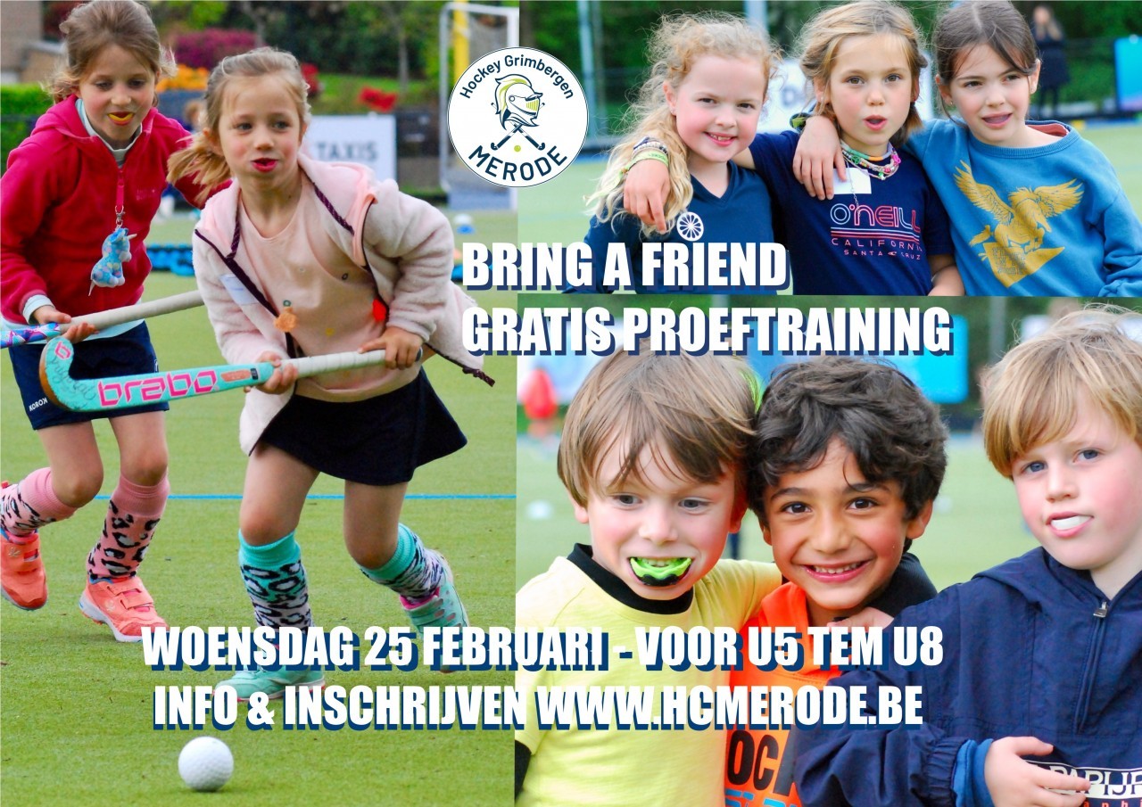 Heb jij vriendjes of vriendinnetjes die hockey spelen (of nog niet) en wil jij eens met hen meetrainen? Op woensdag 25/2 ben je van harte welkom. Dit kan voor alle ploegen van U5 tem U8.